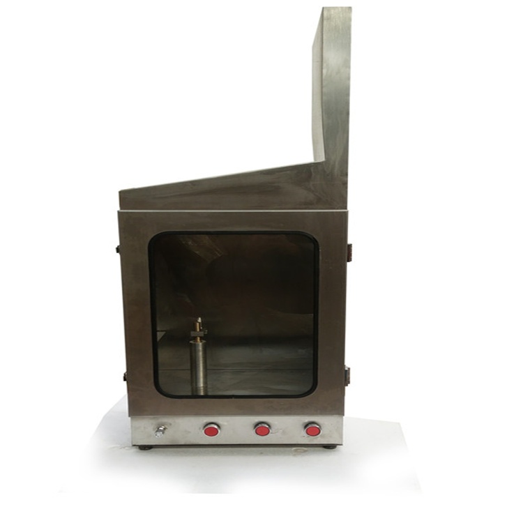 该测试器用于根据燃烧方法评估耐火材料对耐火执行标准的符合性,测量以 45 度角安装的试样的余晖和完全燃烧的燃烧特性。45度燃烧测试仪测量完全燃烧的时间和静态烟雾的余晖时间,平面放置的试样接收一些辐射热,并在腔室中产生固定的热量。它根据 45? Micro、Airmix 方法评估并规定木板、金属板、薄板材、厚层纸以及厚度小于等于 5mm 的平板材料等的耐火性能。 作为在一种耐火性能测试仪,它评估等效于三级的材料(焦化长度: 15cm,小于 5 秒)二、产品功能特点